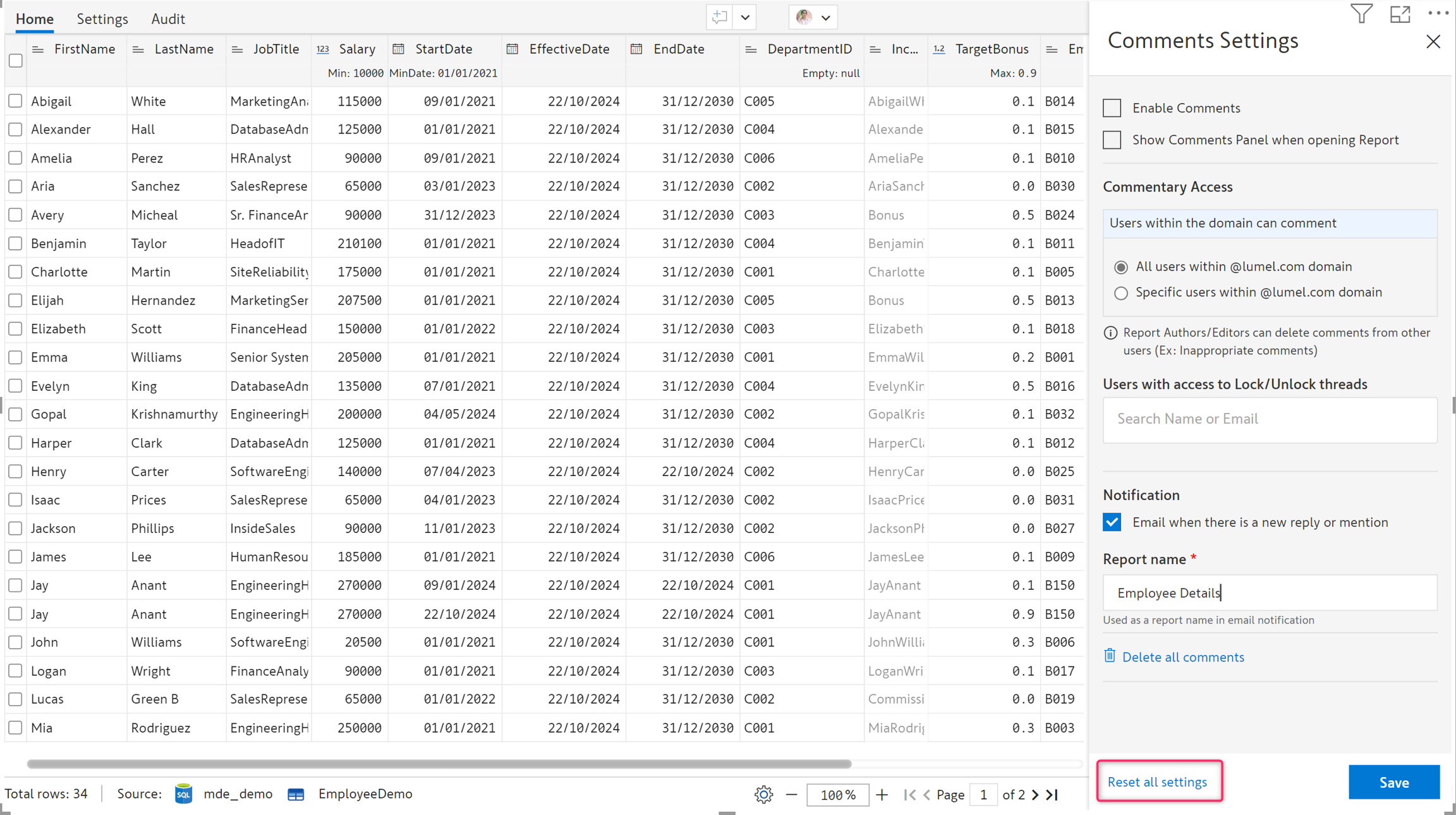 Check the highlighted checkbox to open the comments panel by default when you open the report.